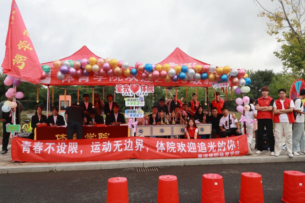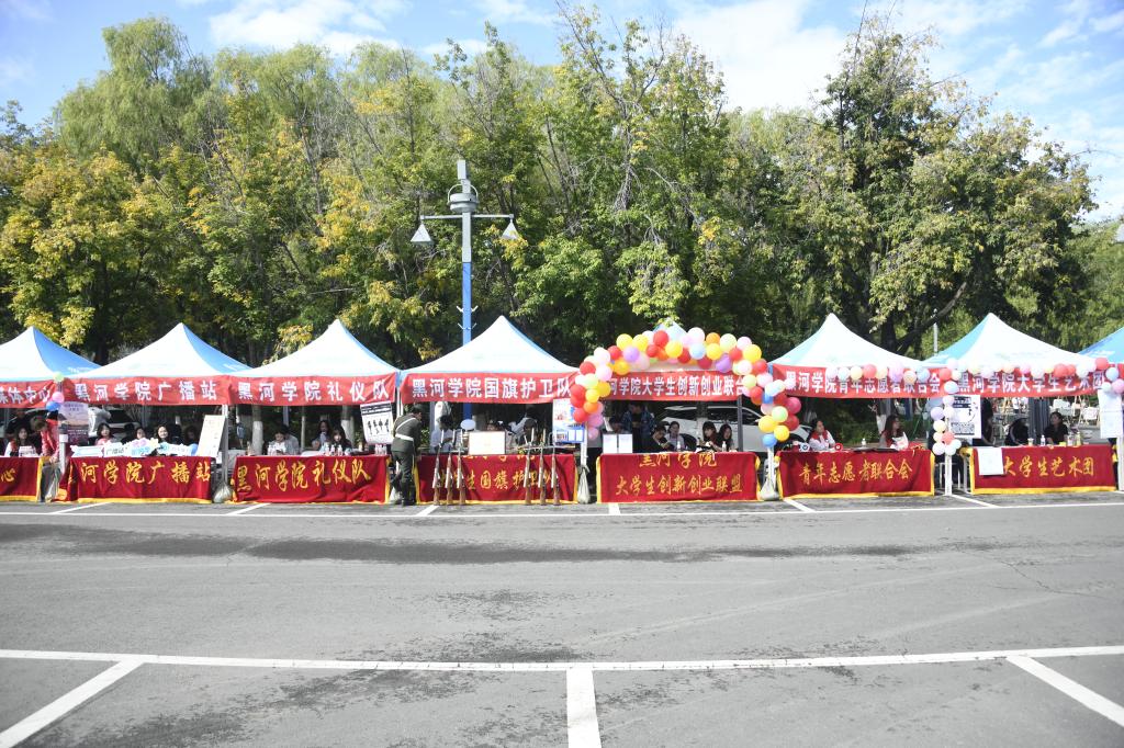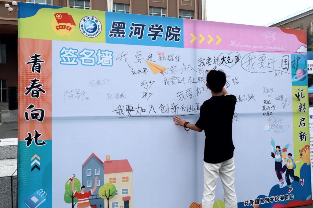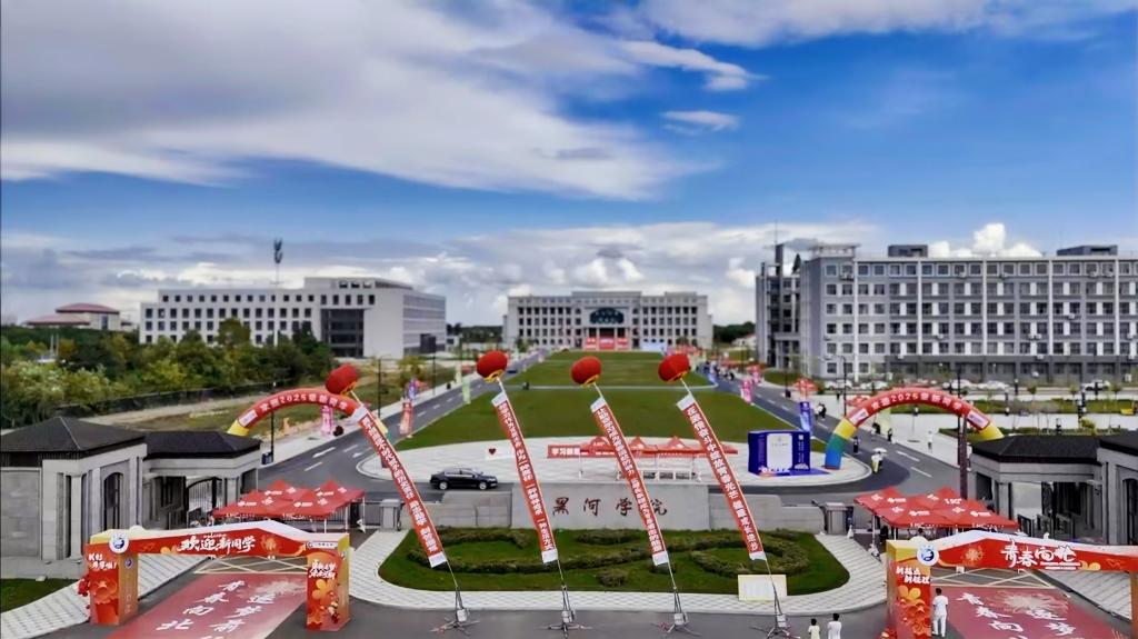 广场上,标志性雕塑与迎新展板交相辉映,将学校的历史底蕴与对新生的期待具象呈现;图书馆前红阶醒目,“青春向北” 的字样不仅是视觉焦点,更成为新生探索知识之路的精神指引;“乘风破浪 星耀大海”主题打卡墙前,新生们纷纷合影留念,定格开启大学旅程的重要时刻;道路旁“最好的时代迎接最好的你”迎新彩旗随风招展,将活力与暖意传递到校园每个角落;明德楼前,学生社团通过特色展演、互动体验等方式展现风采,让新生直观感受丰富多元的校园文化。从校园景观到文化展示,每一处细节,都饱含黑河学院对新同学的热烈欢迎,盼学子们于此开启精彩新篇,在知识海洋乘风破浪,绽放光芒。