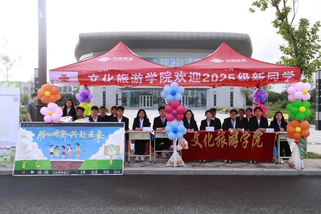 外国语学院设“写给四年后的自己”“幸运抽奖”“外语主题打卡” 三大互动环节,留存新生期许与学院记忆。美术与设计学院通过乒乓球巧投纸杯,赢取惊喜糖果等活动迎接新生。音乐学院以签名墙、迎新乐队、主题打卡点、迎新 “盲盒”、纪念书签等形式,营造艺术氛围,开启新生艺术新程。经济管理学院围绕 “沐恩前行启新程,经管筑梦绘华章”主题,打造“大树型新生照片墙”“党心暖融刮刮乐”“梦想手绘便签墙”,融合精神培育与规划引导。文化旅游学院围绕“文化赋能迎新,温情连接你我”核心,将专业特色与人文关怀深度融合,通过“一杯清茶敬亲人”“暖心衣架——来自学长的爱”等活动让新生感受“文化+”的独特魅力。人文传媒学院通过宿舍迎新卡、共贴照片墙传递温情,以“文来会友,媒以传情”彰显学院特色。理学院设置“心愿箱”与“烦恼箱”,倾听新生心声,助力解决生活困惑。计算机与信息工程学院通过表情包猜成语,赠送定制钥匙扣,写给未来的期望让新生永记初心。教育科学学院在报到处展示学生手工课堂作品图板,赠送迎新胸卡和钥匙扣。体育学院启动 “活力挑战计划”,设“幸运大轮盘”与“体能大比拼”,角逐前三颁发奖状,以运动点燃开学热情。国际教育学院结合国际化办学特色,提供针对性咨询服务,助力国际新生快速适应校园。