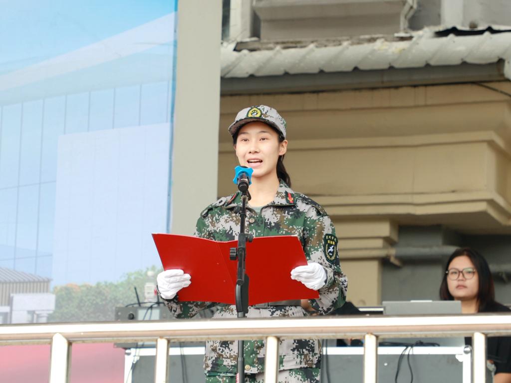 "以军人标准丈量青春,用坚毅品格书写成长!"人文传媒学院新生代表以铿锵誓言表达参训决心和在军训中锤炼意志、挑战自我的坚强意志;承训教官代表则以"科学施训、文明带训"为标准,表达了以部队标准严格要求,作为新生入学的第一课,精心组织、严格施教,以身作则,切实提升训练的质量和效率的承训承诺和要求。