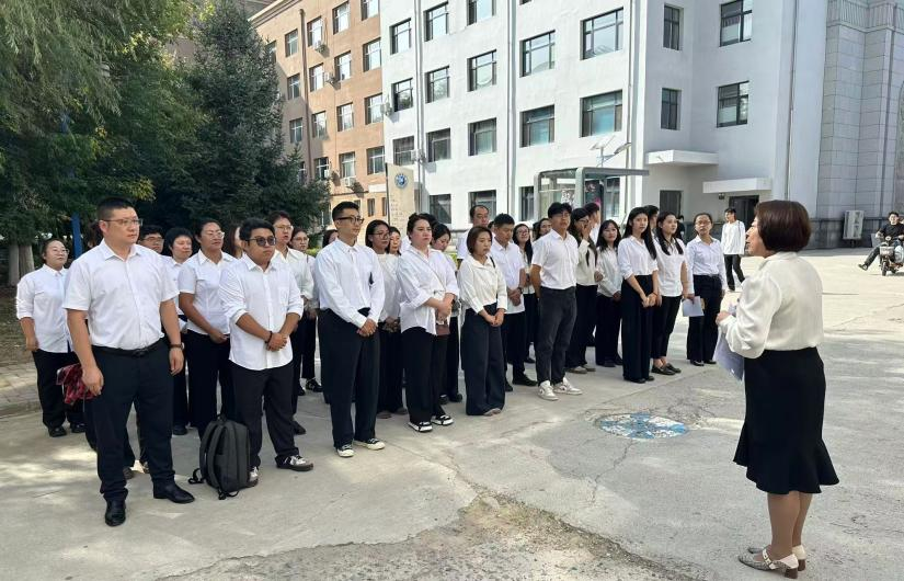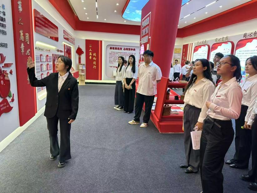 活动过程中,全体新入职教职工集体佩戴校徽,随后参观了体育馆、冰球馆、中苏抗战历史陈列馆、铸牢中华民族共同体意识主题展馆和校史馆,直观感受我校地处边疆的鲜明办学特色,共同了解建校67年发展建设的时代轨迹,深切体验“艰苦创业、自强不息、创新发展、育人戍疆”的办学精神。在新教师入职宣誓环节,面对“明德、笃学、励志、求真”的校训,大家举起右手,庄严宣誓,真诚表达作为一名新教师的光荣使命与责任担当。
