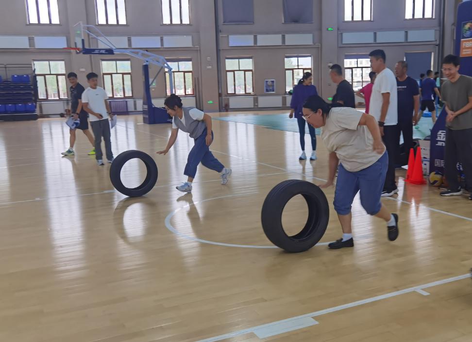 本次活动设置了飞盘入筐、车轮滚滚、障碍跑、赶”猪“跑4项趣味运动。现场欢声笑语不断,气氛热烈非凡。活动中,老师们化身运动场上的“玩家”,默契配合,充分展现了教职工们团结协作、积极向上的精神风貌。