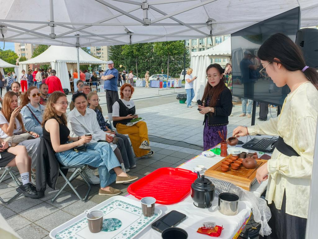 9 月 13 日至14日,学校与布拉戈维申斯克国立师范大学共建的孔子学院受邀参加阿穆尔州图书节,并同期举办了“孔子学院日”文化体验活动。活动聚焦茶艺、书法、中国结等中国传统文化展示,其浓郁的东方韵味吸引了大量俄罗斯民众驻足体验,成为书展中一道亮丽的文化风景线。