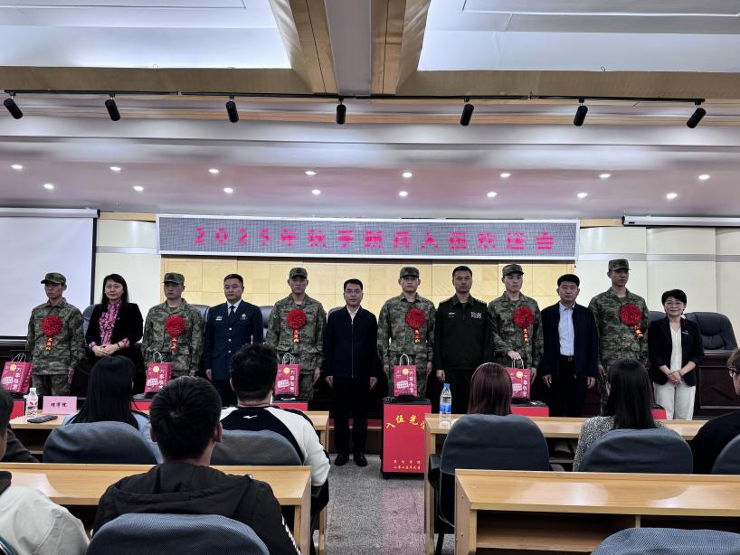 新兵代表刘浩同学以铿锵誓言表达从军报国之志,承诺用青春守护祖国,践行“明德、笃学、立志、求真”的校训精神。退役复学在校生焦蕊同学在发言中分享了宝贵的军旅经验,勉励新兵们尽快完成角色转变,在部队大熔炉中锤炼意志品质,传承红色基因,早日成长为合格军人。