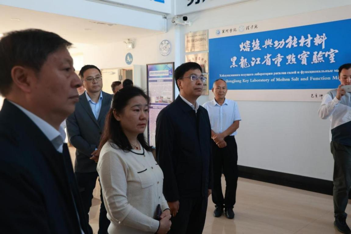调研团听取了学校关于特色资政服务、大学生创新创业教育、国家级科普基地及国际科技合作等方面的工作成效,并实地参观了黑龙江省熔盐与功能材料重点实验室,了解了实验室的科研创新、成果产出以及国际交流合作等情况。