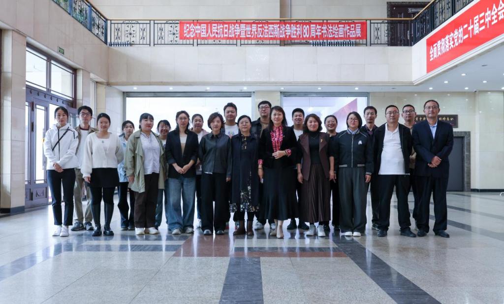 开幕式后各学院代表教师在明德楼一楼,参观“纪念中国人民抗日战争暨世界反法西斯战争胜利80周年书法绘画展”。本次展览由学校联合国家语言文字推广基地、黑河市美协、书协共同举办,展出书法、国画、油画及版画作品50幅。一幅幅“歌颂祖国、宣扬红色精神”的磅礴行书、楷书,“各族儿女心向党”的绚丽画卷,把观众带回硝烟与信仰交织的岁月。
