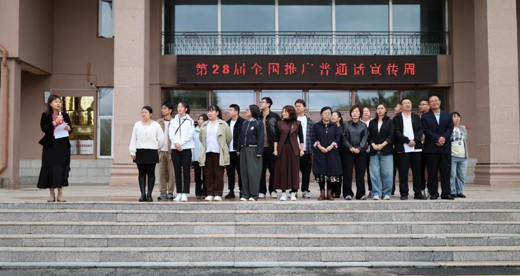 近日,学校第28届全国推广普通话宣传周开幕式在明德楼门前举行。今年推普周的主题是“加大国家通用语言文字推广力度,促进铸牢中华民族共同体意识”。