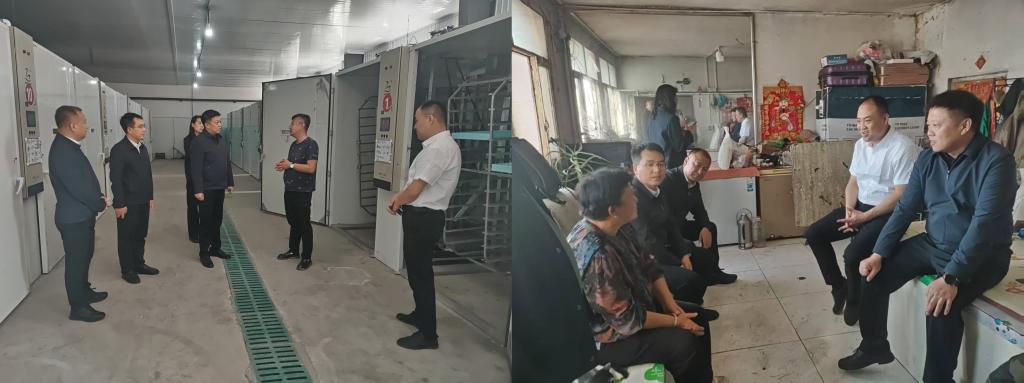 在海星镇,刘晓峰一行实地察看了挂职干部办公与生活环境,并听取了海星镇有关特色产业项目发展情况介绍。随后,深入兴隆村腾运鹅雏孵化场,了解运营进展,对校企合作和社会实践项目进行现场调研。之后在治安村,对脱贫户进行慰问走访。