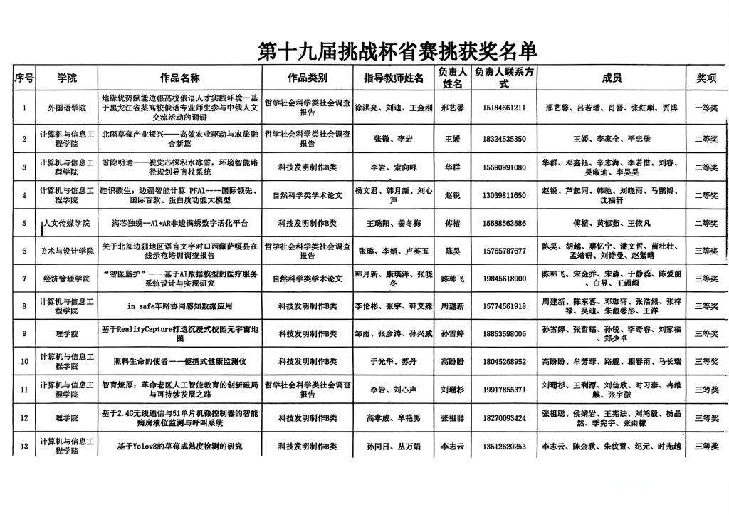 近日,第十九届中国工商银行融e行“挑战杯”黑龙江省大学生课外学术科技作品竞赛成功举办,共吸引来自67所高校的一万余件作品参赛,6万余名师生参与。我校共荣获奖项13项,包括一等奖1项、二等奖4项、三等奖8项。其中,一等奖作品《地缘优势赋能边疆高校俄语人才实践环境》创新突出、应用性强,获得评审高度认可。徐洪亮、刘迪、王金刚三位教师获评“优秀指导教师”,学校荣获“优秀组织奖”。
