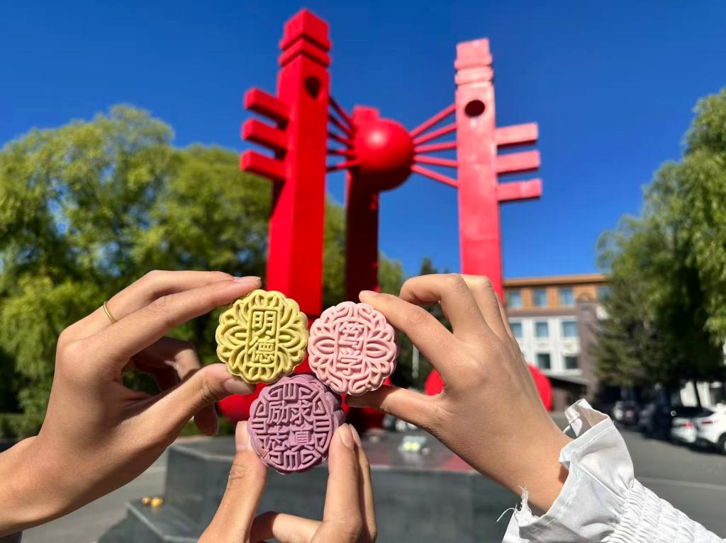 在中秋佳节来临之际,学校为在校学生发放印有校训的定制月饼,让团圆的甜蜜与校训精神在北疆校园中交融传递。此次定制月饼正面镌刻着“明德、笃学、励志、求真”的八字校训,将校园精神内涵与中秋文化符号巧妙结合,不仅是对传统节日的致敬,更是希望以潜移默化的方式传递校园精神,增强师生的身份认同与情感共鸣。
