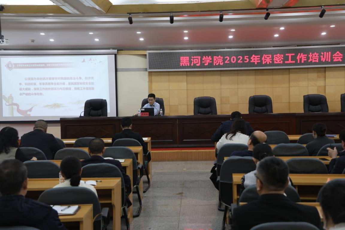 为强化保密意识,筑牢保密安全防线,11月25日邀请黑河市保密局蔄智桓同志为我校做了保密工作专题培训。学校保密工作委员会及办公室相关工作人员共57人参加培训。