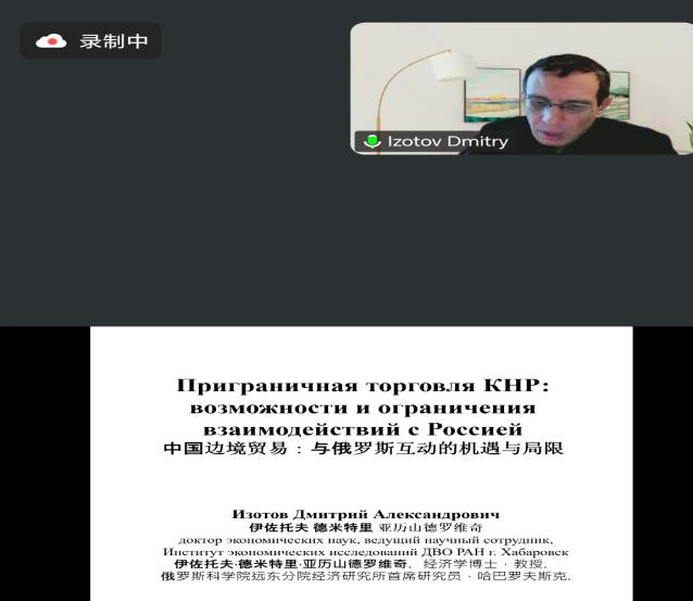 为期2天的论坛中,中俄专家学者分别围绕“数字经济和地缘政治不稳定背景下战略分析方法和风险管理的应用”“中俄金融合作形势分析”“中国边境贸易:与俄罗斯互动的机遇与局限”“中俄经贸合作发展现状、趋势与思考”“边境地区政策评估——以俄罗斯阿穆尔州为例”等主题作学术报告。