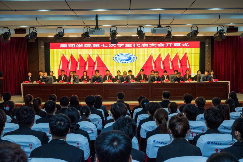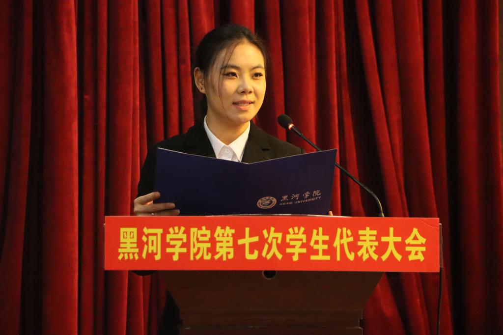 11月30日,学校第七次学生代表大会在求知楼报告厅召开。大会听取、审议并表决通过了相关工作报告,选举产生了我校第二十九届学生会主席团成员。共青团黑河市委副书记秦思璐,校党委副书记姜国玉出席并讲话,宣传统战部、后勤管理处、教务处、招生就业处、学生工作部相关负责人,共青团第二届委员会委员及224名代表参加本次会议。