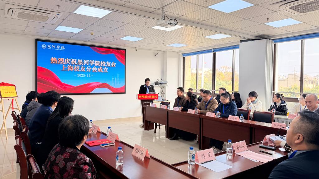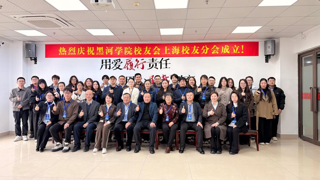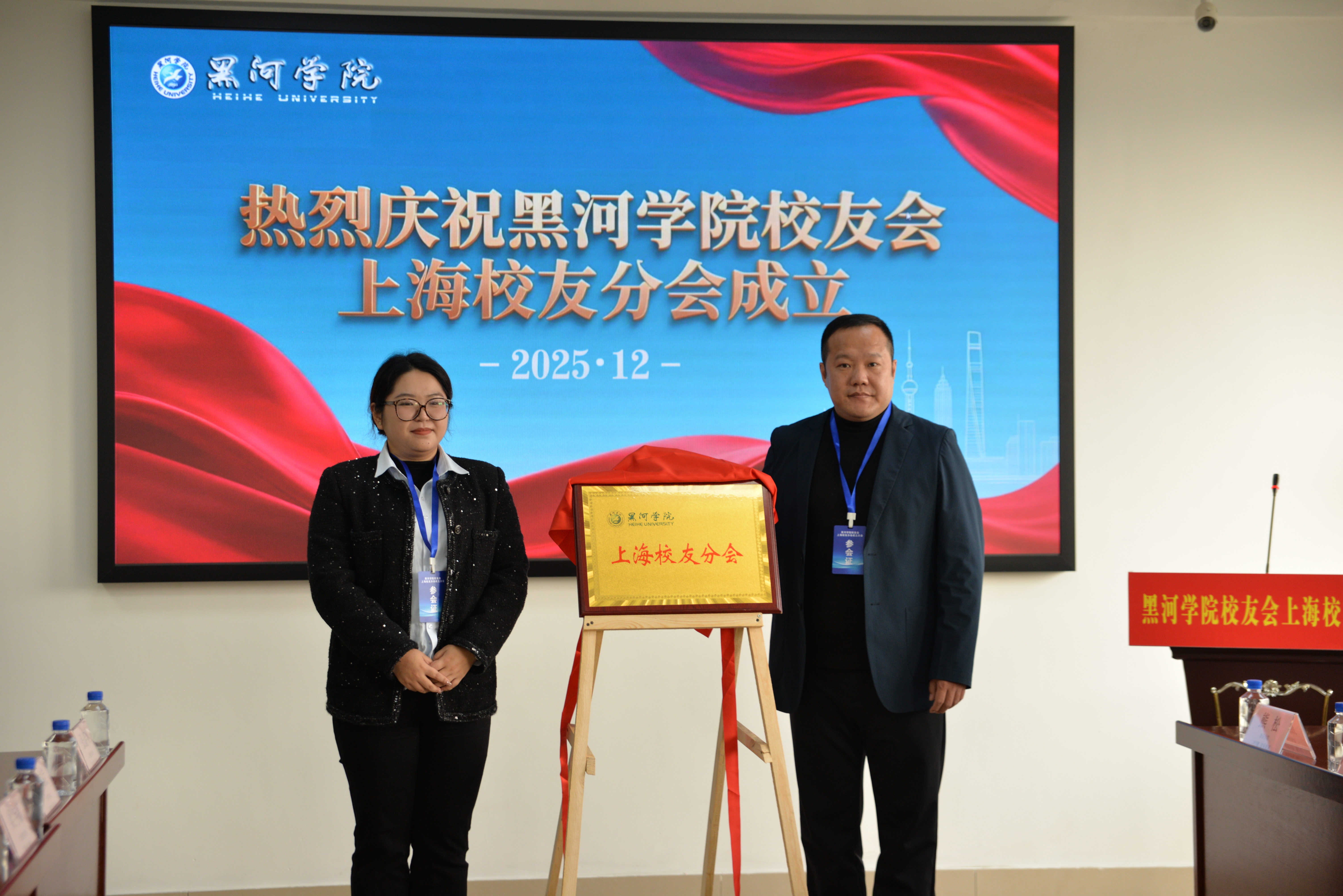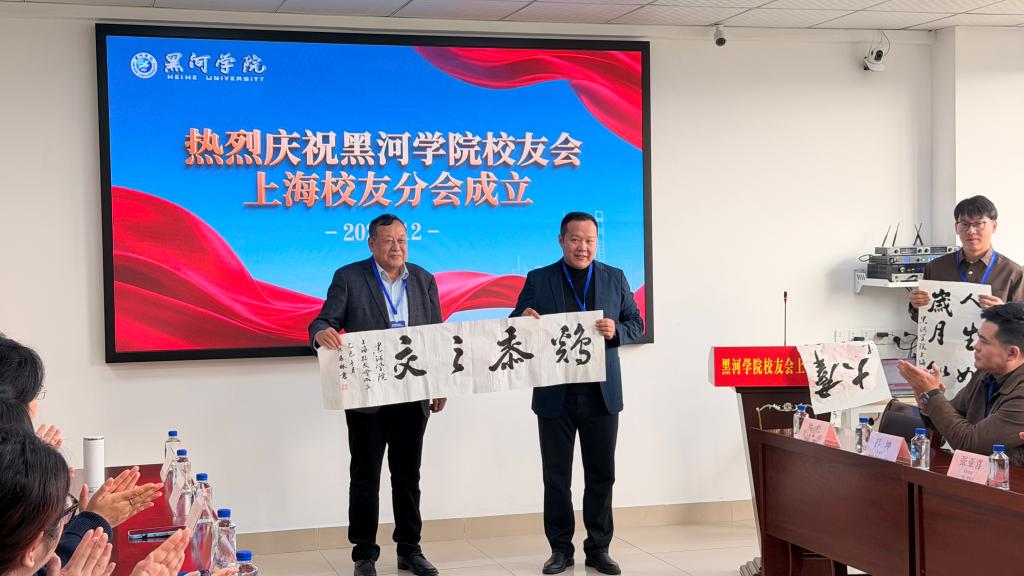 会议宣读《关于成立上海校友会的批复》《黑河学院上海校友会第一届理事会成员名单》,确立上海校友会的工作机制和组织架构。姜国玉与新任会长宋悦娆为“黑河学院校友会上海校友分会”揭牌,并为首届理事会成员颁发聘书。