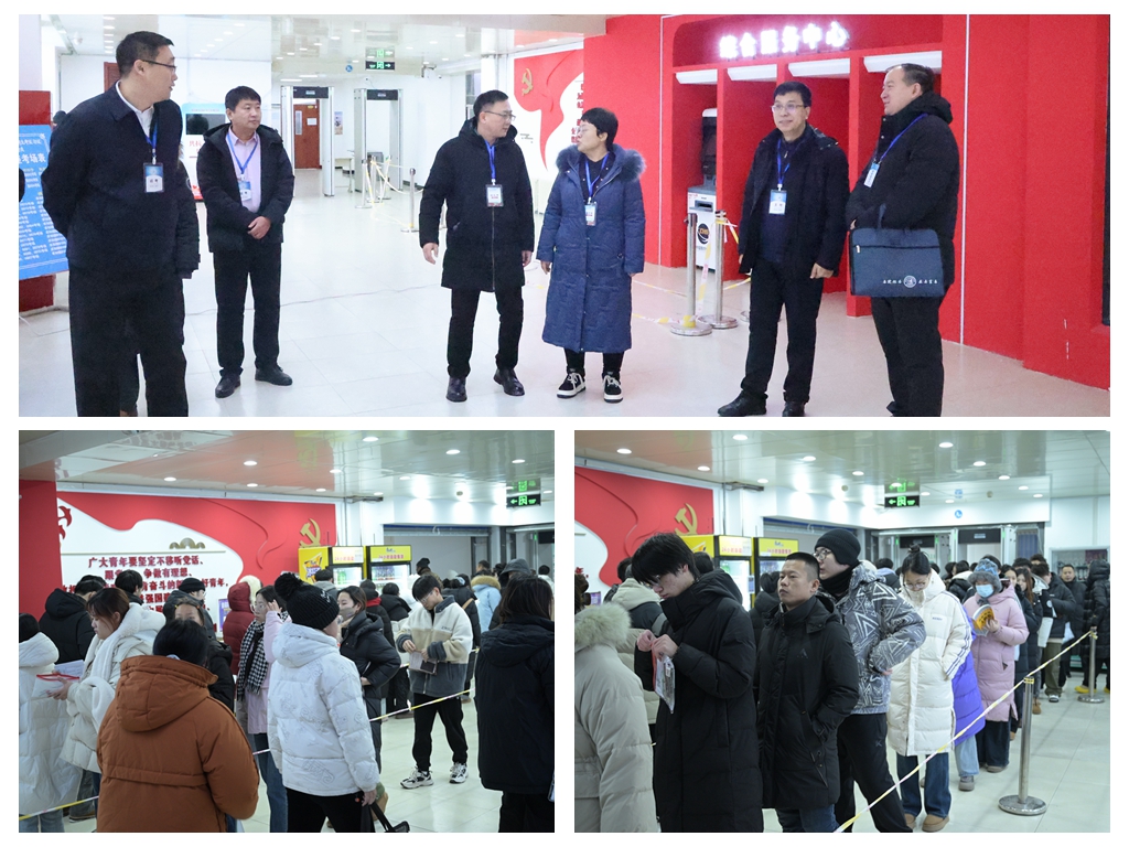 考试期间,校领导带队深入各考场、存包区、后勤保障点检查工作,重点查看试题试卷保管、考场秩序维护、考生服务保障等情况,要求考务人员严格执行考试纪律,同时叮嘱工作人员做好防寒保暖与服务保障;对坚守岗位的考务人员、志愿者、后勤职工进行慰问,强调要以“细致、耐心、负责”的态度做好每一项工作。