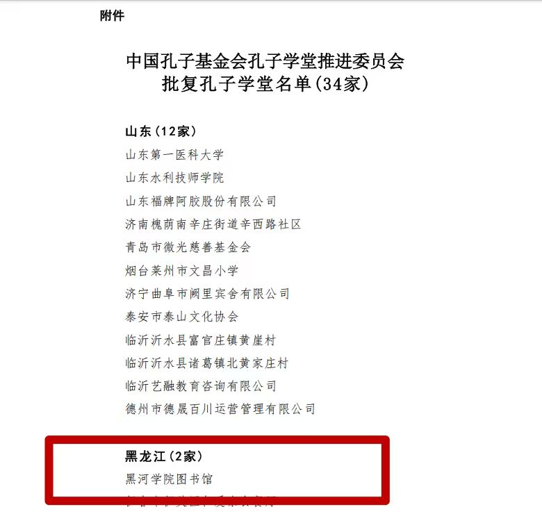 12月24日,经中国孔子基金会秘书长办公会研究,中国孔子基金会孔子学堂推进委员会批复,学校图书馆成为省内唯一一所成功获批孔子学堂的高校图书馆。