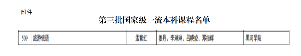 近日,教育部公布第三批国家级一流本科课程认定结果,我校《旅游俄语》课程成功入选,跻身全国5994门获评课程之列,实现学校国家级课程建设零的突破。