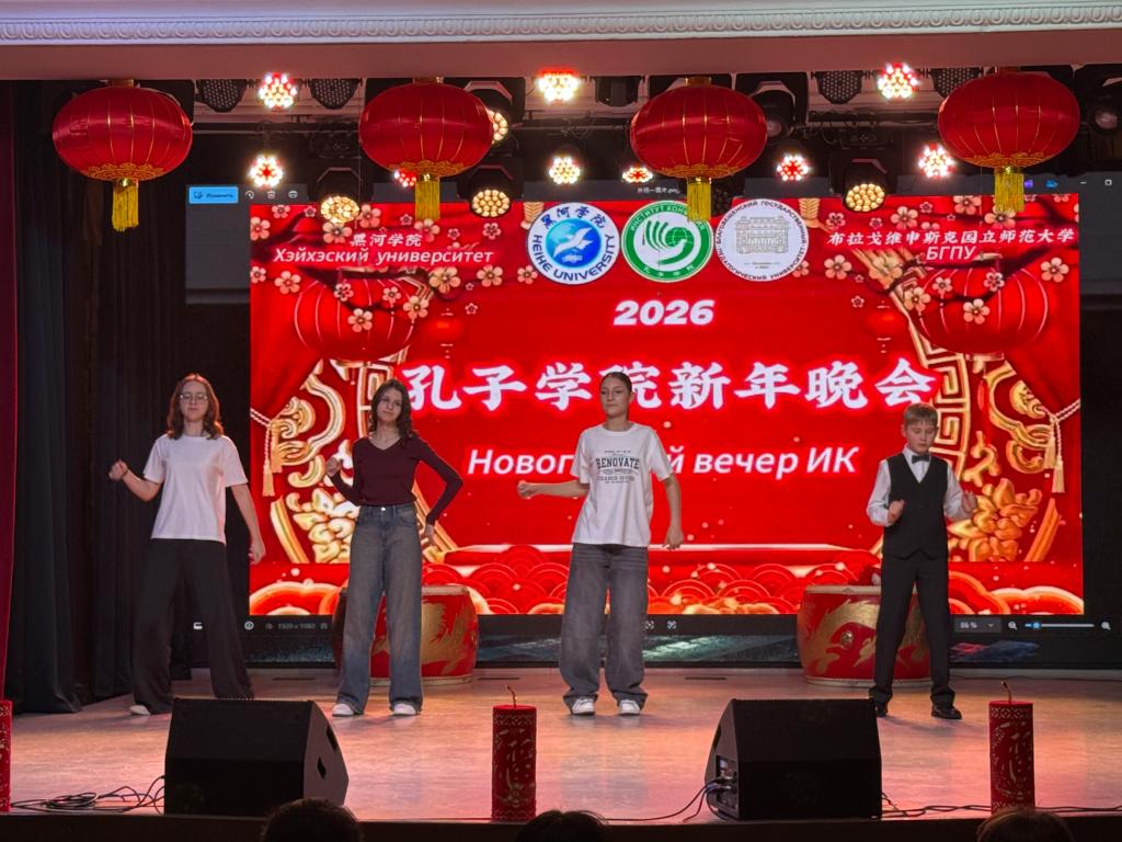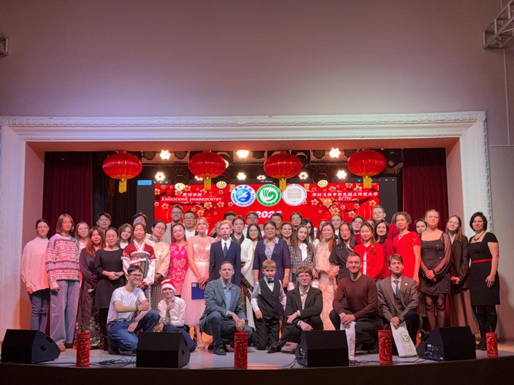 12月26日,学校与布拉戈维申斯克国立师范大学共建孔子学院举办了新年联欢晚会,活动现场一片喜庆祥和。
