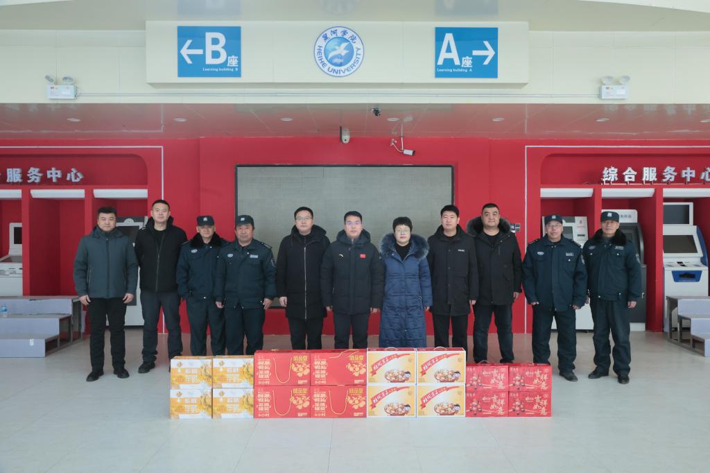 学校领导一行先后前往明德楼值班室、后勤管理处会议室、3号学生公寓楼、求知楼大厅及校门卫室等场所开展慰问。每到一处,校领导都与在岗教职工、留校学生亲切交流,送上新春慰问品,并代表学校致以诚挚的新春问候与美好祝福。