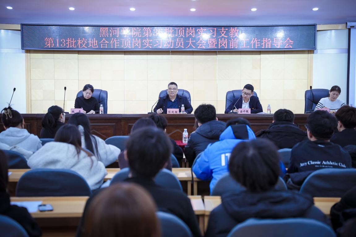 近日,我校第36批顶岗实习支教、第13批校地合作顶岗实习动员大会暨岗前工作指导会,在明德楼五楼多功能厅顺利召开。各二级学院主要负责人、驻县管理教师、教务处相关工作人员及109名顶岗实习(支教)学生齐聚一堂,共同开启基层实践的全新征程,会议由实践教学与设备科负责人主持。