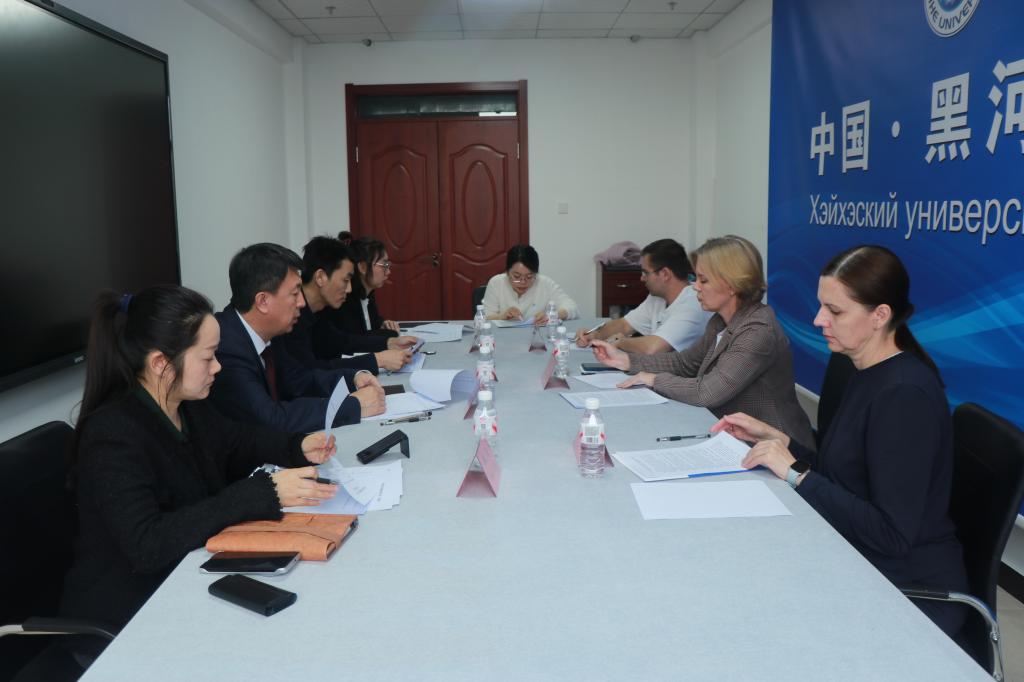 4月17日,阿穆尔国立大学副校长洛伊巴·娜塔莉娅·弗拉基米罗夫娜一行来访我校,学校党委委员、副院长荆涛及相关部门负责人与代表团举行工作会谈。