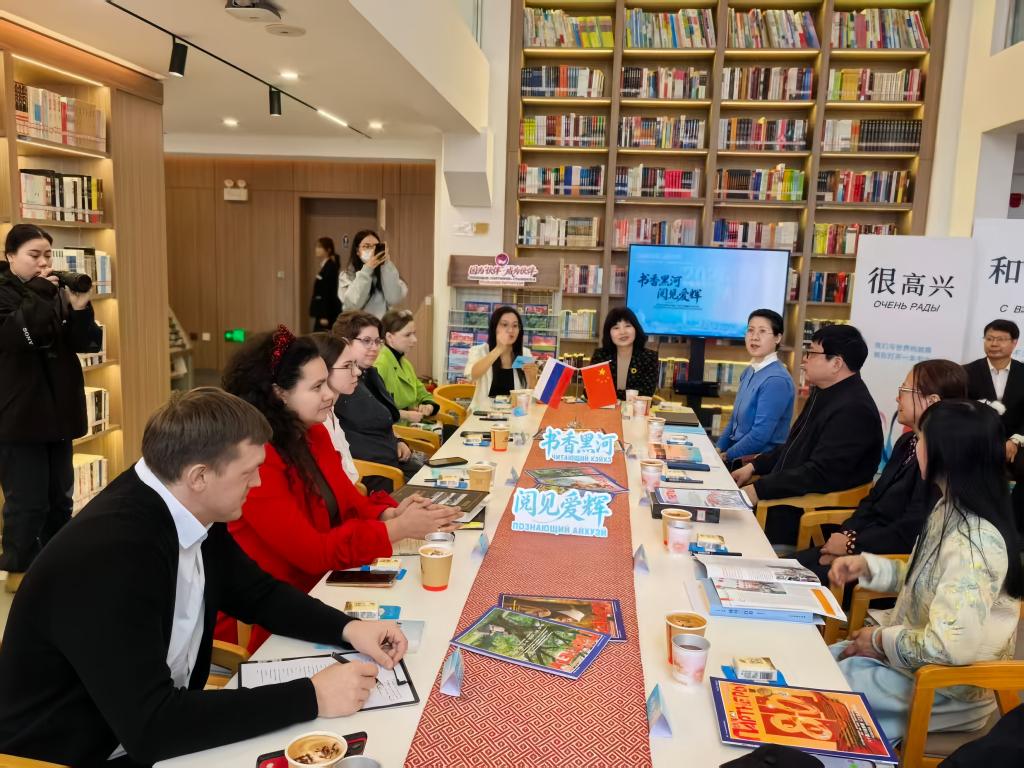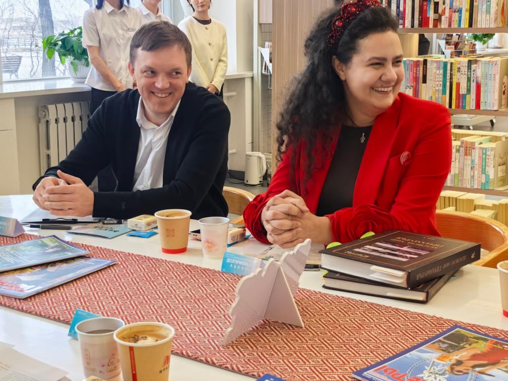 在“因为《伙伴》·成为伙伴‘书香黑河 阅见爱辉’”中俄阅读沙龙活动中,我校图书馆馆长宁艳红教授,外国语学院外籍教师杰夏特里科娃、普斯托瓦洛受邀作为嘉宾出席。三位嘉宾分别向现场中俄文学爱好者推介优质书籍,结合自身阅读经历分享读书心得,并与在场读者展开深入交流探讨。此次活动以阅读为纽带,进一步拉近了中俄两国读者的心灵距离,搭建起中俄文化交流互鉴的温馨桥梁。