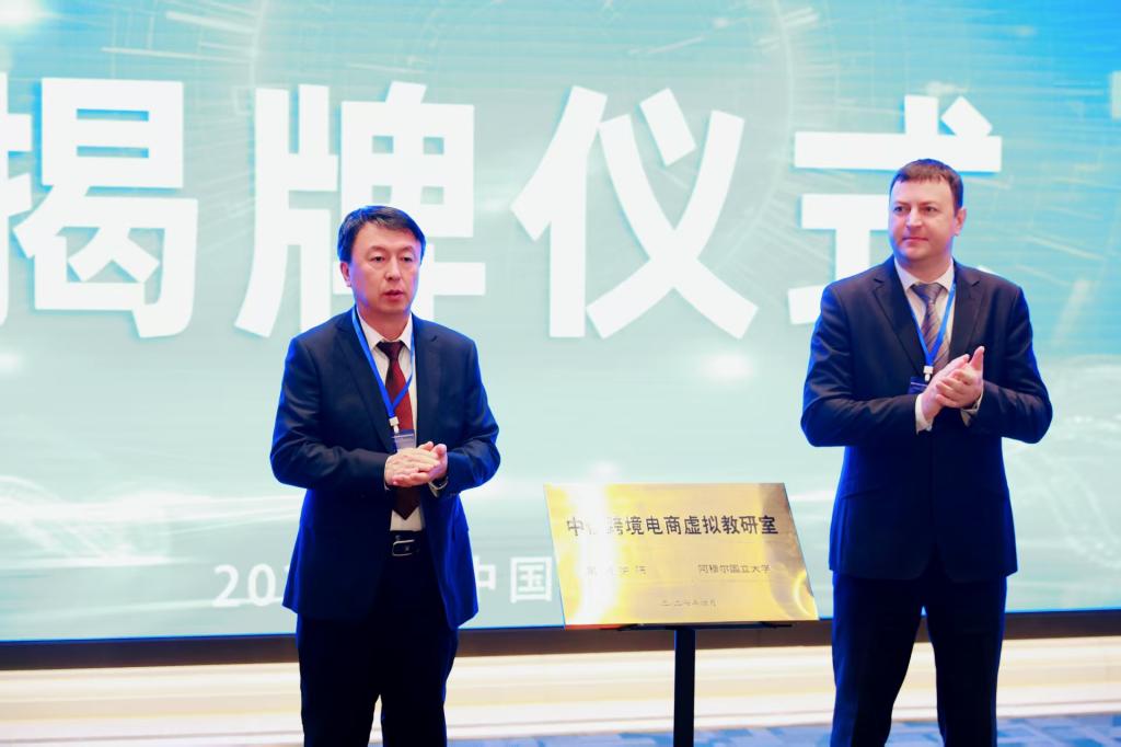 仪式上,学校党委委员、副院长荆涛和俄罗斯阿穆尔国立大学副校长采佩列夫·奥列格·阿纳托利耶维奇共同为虚拟教研室揭牌,并向教研室成员单位颁发聘书,标志着中俄跨境电商虚拟教研室正式成立。