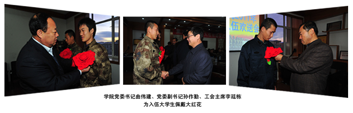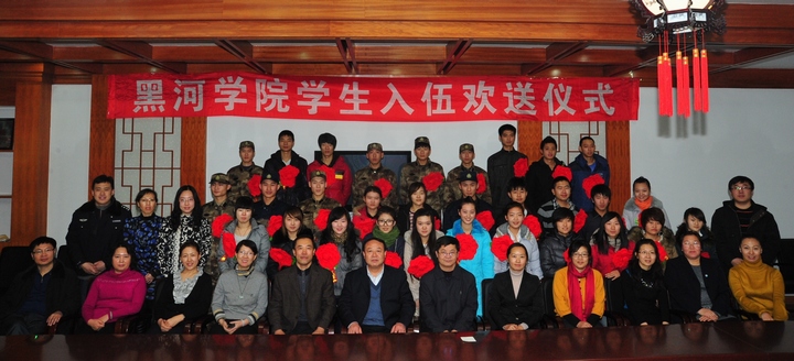 黑河学院宣传部、学工部、招生就业处、武装保卫部、教务处及入伍大学生所在系负责人和31名入伍大学生参加了欢送会。