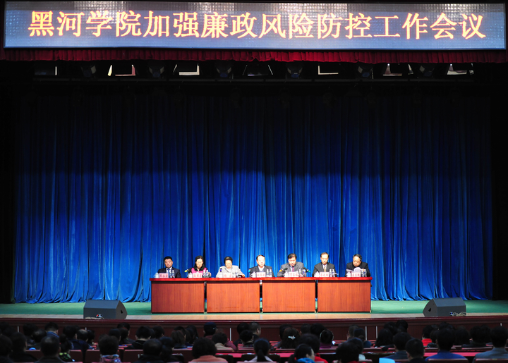 学院院长、学院加强廉政风险防控工作领导小组组长贯昌福同志传达了全省教育系统加强廉政风险防控工作会议精神;学院党委副书记、学院加强廉政风险防控工作领导小组副组长杨宏同志宣读了《黑河学院加强廉政风险防控工作方案》;学院党委副书记、工会主席、学院加强廉政风险防控工作领导小组副组长李廷栋同志宣读了《关于成立黑河学院加强廉政风险防控工作领导小组的通知》。