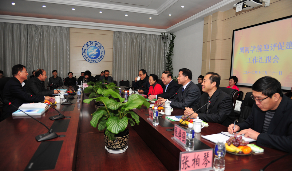 魏厅长认真听取汇报后作了重要讲话。魏厅长充分肯定了我院近年来取得的成绩。他说,黑河学院领导班子团结,积极奋进,学院发展目标明确,在中俄合作办学方面取得了突出成绩,走在了高校前列。魏厅长从评估专家的角度着重对我院本次教育部本科教学合格评估应该准备的重点工作和注意事项进行了详细的指导。他表示,对黑河学院通过本次评估充满信心,希望黑河学院全体教职员工振奋精神,以更加积极饱满的热情投入到本科教学评估工作中来,真正做到以评促建,深入开展中俄联合办学,推进学院国际化水平,把黑河学院建设成高水平具有浓郁地方特色的高校,实现学院更好更快发展。