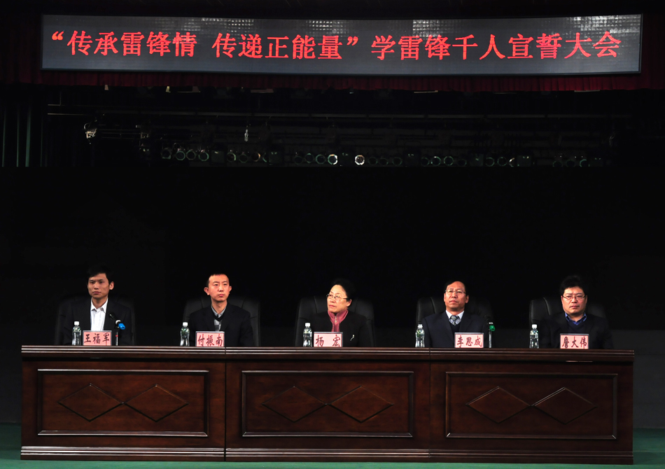 本网讯(学生记者 李玉秀摄影刘轶男)为深入学习贯彻党的十八大精神,在全社会大力弘扬雷锋精神和志愿者精神,倡导志愿服务理念,掀起志愿行动热潮,进一步服务黑河经济社会建设,3 月15日,由黑河市委宣传部、共青团黑河市委员会、黑河学院联合开展的“传承雷锋情 传递正能量”学雷锋千人宣誓大会在我院礼堂举行,1100余名青年志愿者齐聚一堂,庄严宣誓。