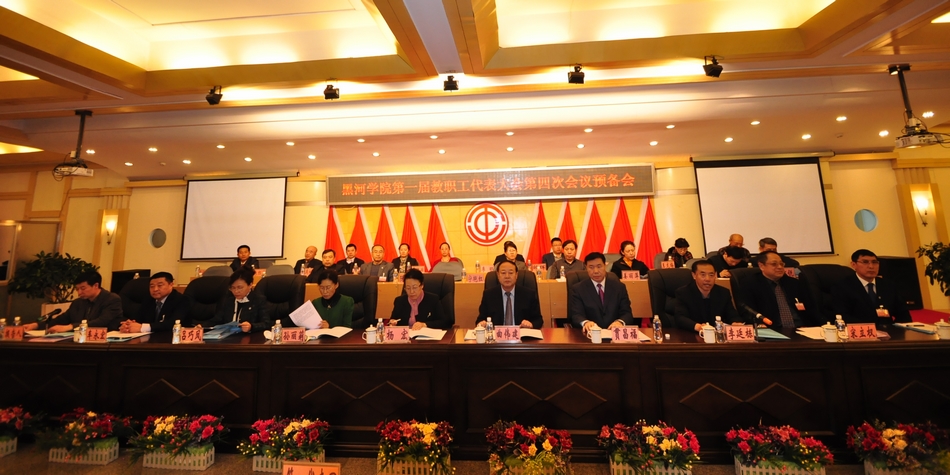 本网讯(记者 姜辉 何振东)3月21日下午,黑河学院一届四次教职工代表大会暨一届四次工会会员代表大会预备会议在综合楼五楼多功能厅如期召开。学院党委书记曲伟建,院长贯昌福,党委副书记杨宏、李廷栋,纪委书记孙丽莉,副院长宋立权、吕巧凤、张焕强、车永宏参加了预备会。预备会由学院党委副书记、大会主席团副主席李廷栋主持。