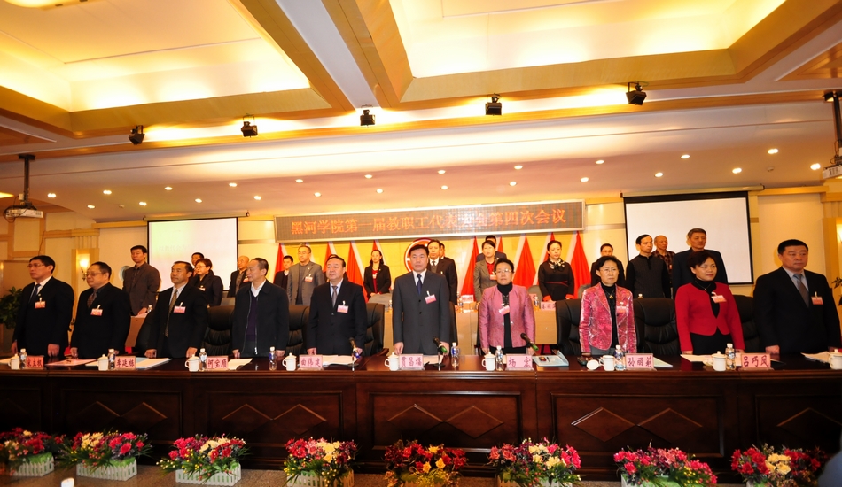 本网讯(记者 姜辉)汇聚各方智慧,凝聚发展力量。3月22日上午,黑河学院一届四次教职工代表大会暨一届四次工会会员代表大会在综合楼五楼多功能厅隆重举行。151名正式代表与12名列席代表参加了大会。代表们肩负着全院教职工的重托,齐聚一堂,以高度负责的精神,积极建言献策,共商学院发展大计。