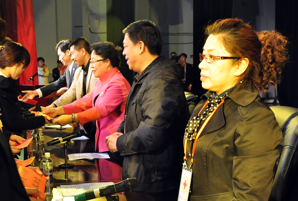 领导向新会员代表颁发了红十字会员证书