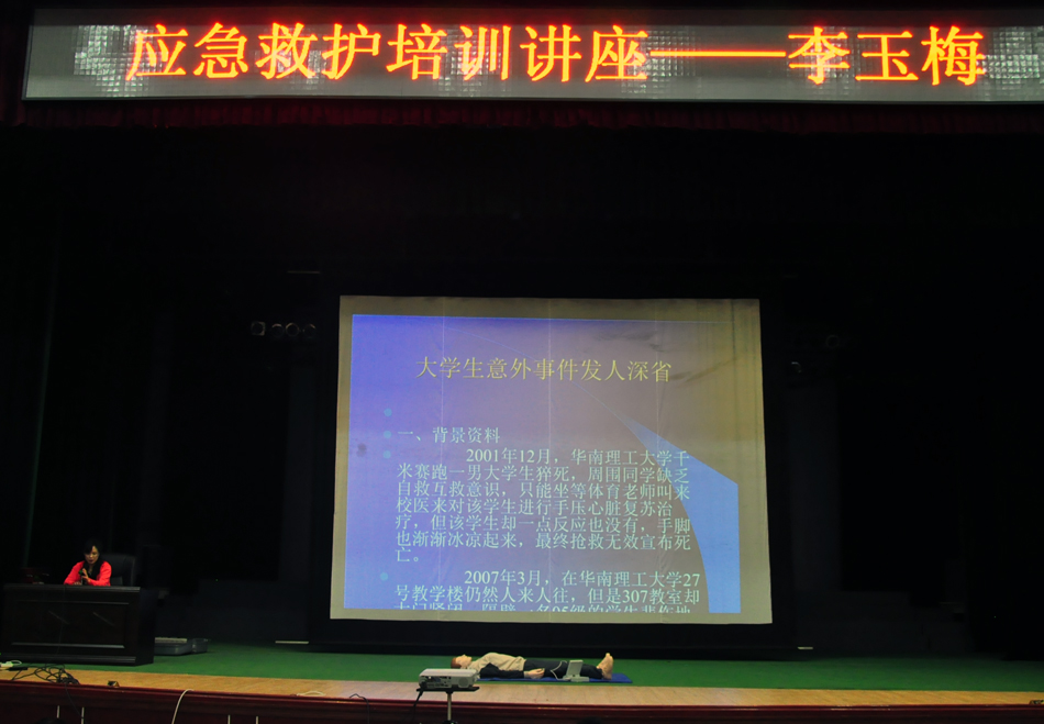 最后,黑河市第二人民医院急诊科主治医师李玉梅为参会领导及师生进行了应急救护培训讲座。