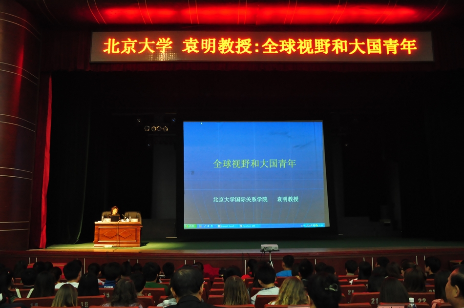 本网讯(记者 何振东)5月24日下午,北京大学国际关系学院袁明教授在学院综合楼礼堂作了题为“全球视野和大国青年”的精彩讲座。学院党委书记曲伟建,党委副书记杨宏、李廷栋,副院长车永宏,北京大学当代俄罗斯研究中心主任关贵海教授出席了本场讲座。党委副书记杨宏主持讲座。