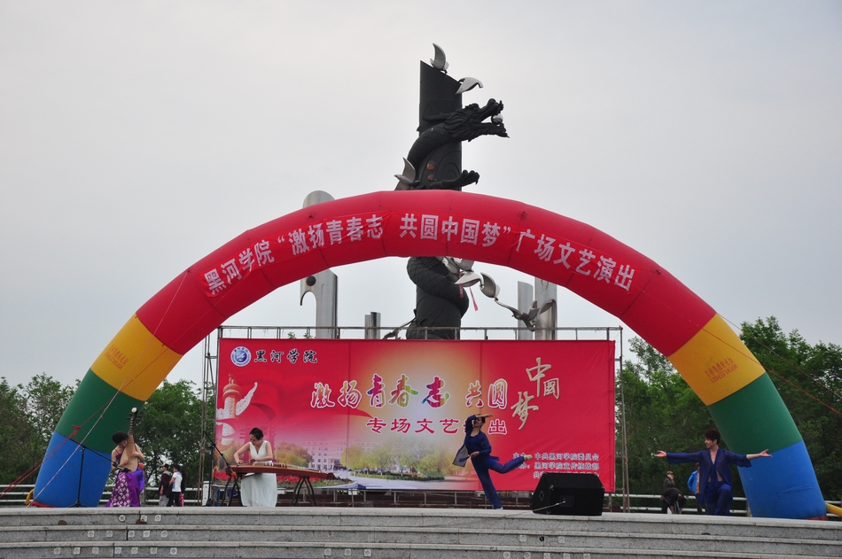本网讯(记者 何振东 摄影 姜辉)六月的夜晚,清爽宜人,欢声笑语;六月的黑河,生机焕发,大地飞歌。6月15日晚,由黑河学院党委主办,宣传统战部、团委共同承办的黑河学院“激扬青春志共圆中国梦”周末大舞台广场文艺演出在黑河世纪广场举行。学院党委副书记杨宏,宣传统战部、团委、招生就业处、音乐系等部门负责人与现场观众共同观看了演出。