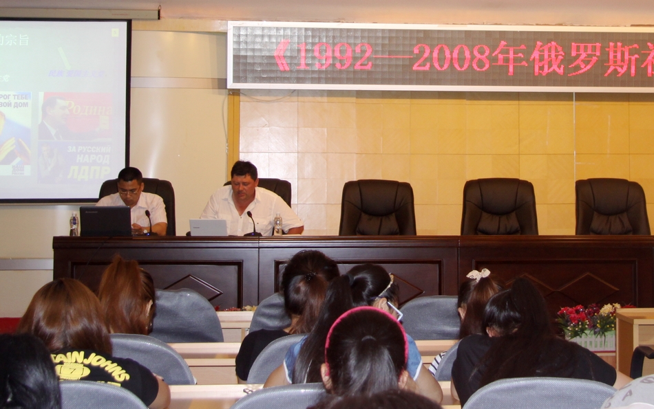 讲座中,奥列格从苏联解体后新兴俄罗斯的社会政治变迁入手,生动详实地阐述了从叶利钦时代到普京时代俄罗斯的社会政治状况、社会阶层与多党参政,社会诉求及民族矛盾,普京对21世纪俄罗斯新型政治制度的构建及其向集权政体发展趋向等问题,使广大学生对当代俄罗斯社会有了一个深刻的认知。讲座后奥列格还就师生关心的问题进行了解答。