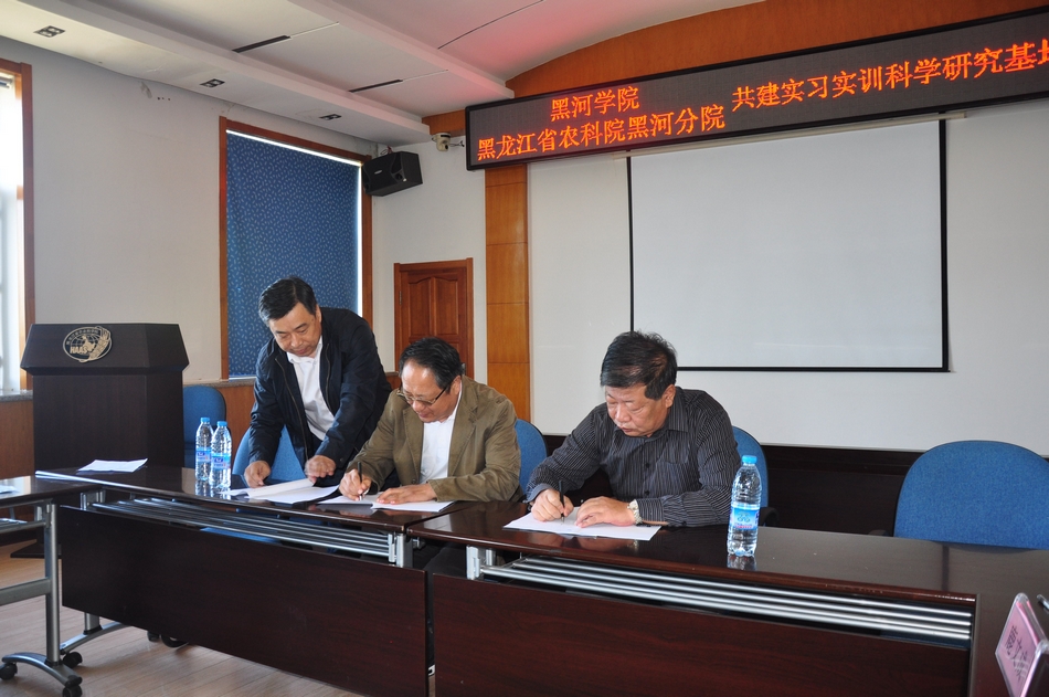 黑河学院与黑龙江省农科院黑河分院共建实习实训科学研究基地揭牌签约仪式的成功举行,标志着黑龙江省农科院黑河分院与黑河学院的合作交流平台正式落成,双方本着“互利合作,实现双赢”的原则,进一步加强在储备人才资源、科研实力等方面的合作。