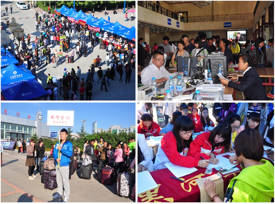 为方便新生报到,学校在火车站、汽车站设立了新生接待站,专车接送新生及家长。报到现场秩序井然,新生们排队进场,经工作人员细心周到的安排,迅速的办完各项入学手续。校园内各接待点老师和学生志愿者,积极、主动、热情的帮助新生及家长搬运行李,办理报到手续、领取校园一卡通、安排宿舍、领取军训服、购买床上用品,接待现场紧张有序,使新生在短时间完成报到注册工作。另外,俄罗斯远东国立农业大学、俄罗斯阿穆尔国立大学、布拉戈维申斯克国立师范大学三所联办院校派出了13名师生组成接待组,在迎新报到处设立3个专门接待点,介绍与我校联办的5个专业办学情况。