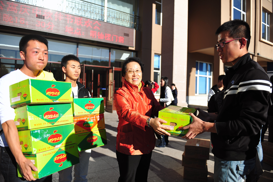 本网讯(记者 王佳)在中秋佳节来临之际,为了让来自全国四面八方的莘莘学子在祥和愉悦的节日氛围中欢度佳节,感受到家的温暖,学校为每一位学生发放中秋节礼物——月饼和苹果,学校党委副书记杨宏亲自为学生送上中秋节日的祝福。