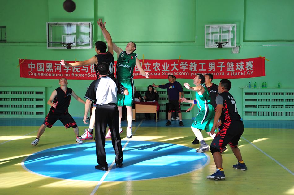 本网讯( 记者 宁艳红 王佳)为进一步增进中俄两国高校的友谊,加强中俄高校篮球爱好者的交流,10月2日,男子篮球友谊比赛在俄罗斯远东农业大学举行,来自中国黑河学院和俄罗斯远东农业大学的篮球爱好者,现场切磋球技,赛出友谊,赛出风格。