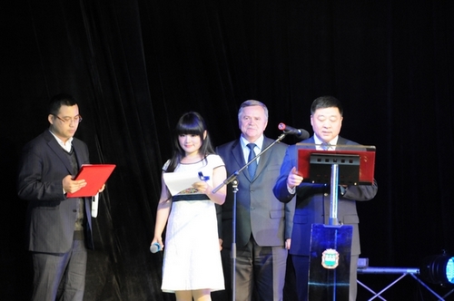 开幕式还对《世界青年—前进的脚步》科学实践研讨会、《不同国家的儿童,梦想和平的生活》摄影比赛、《文化与创作》社会设计比赛项目的获胜者进行了表彰、奖励,阿穆尔州内政和信息政策部部长加林娜•斯捷潘娜芙纳•霍赫洛娃和布拉戈维申斯克国立师范大学校长尤里·巴浦洛维奇·谢尔盖耶科等领导为获奖者颁奖。