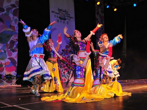 随后,中俄两国学生争相献艺,进行了民乐合奏《步步高》、民歌《罗斯》、民族舞蹈《唐古拉山》等丰富多彩的民族风情展演,展示了中俄文化艺术的魅力和当代大学生朝气蓬勃的精神面貌,用歌声和舞蹈共庆交流年,在欢歌笑语中实现了中俄大学生的零距离交往。