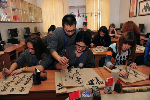 本网讯(记者 何振东)10月22日上午,黑河学院师生在俄罗斯布拉戈维申斯克国立师范大学孔子学院进行书法、剪纸等艺术交流活动,弘扬和传播中华民族传统文化。