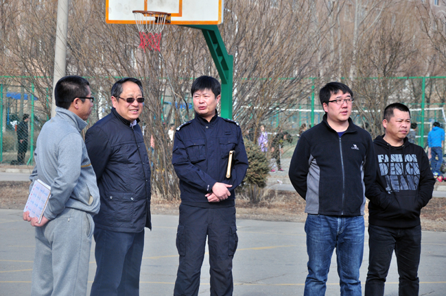 本网讯(特约记者 张铎 摄影 王佳)3月24日下午,副院长宋立权到体育馆前篮球场地看望慰问正在训练的市公安局公安干警。