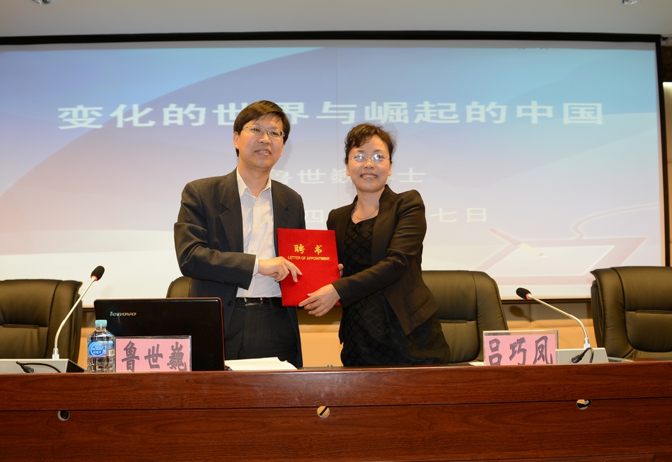 鲁世巍博士曾在中国外交部任职,主要从事经济问题和外交战略问题研究,在世界经济及国际关系方面发表了一系列学术成果,在国内外拥有170多万网民。鉴于鲁世巍博士在学术领域的突出成就,我院聘任鲁世巍博士为黑河学院俄罗斯研究所特聘研究员,副院长吕巧凤代表学院向鲁世巍博士颁发了聘书。