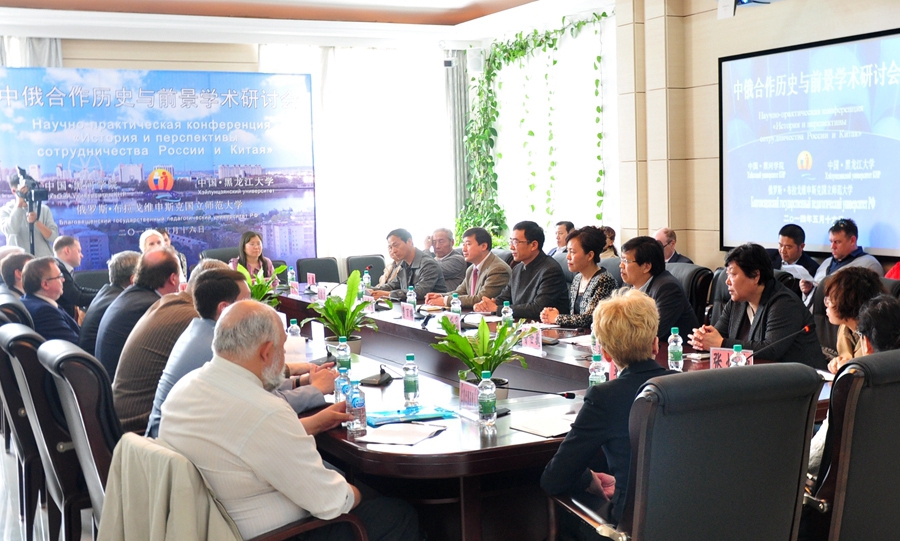 本网讯(特约记者 彭传怀)5月16日,由黑河学院、黑龙江大学与俄罗斯布拉戈维申斯克国立师范大学共同举办的“中俄合作历史与前景学术研讨会”在我院召开,来 自北京大学、黑龙江大学、佳木斯大学和俄罗斯莫斯科国立经济大学、莫斯科国立师范大学、远东联邦大学、布里亚特国立大学、布拉戈维申斯克国立师范大学、远东国立农业大学、哈巴罗夫斯克地质博物馆等10余所中俄高校和科研院所的60余位专家学者与会。黑河学院党委书记曹百瑛、副院长吕巧凤出席研讨会。研讨会由历史文化旅游系主任亢稚文教授主持,我院历史文化旅游系、黑龙江流域历史与文化研究所和俄罗斯研究所教师参加了研讨会。