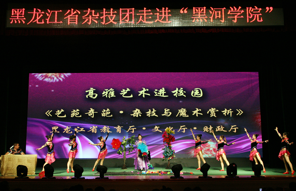 高雅艺术进校园,是深受师生喜爱的一种艺术教育形式。今年到我院演出的黑龙江省杂技团是文化部授予的全国先进艺术表演团体,团内演员老、中、青三代结合,人才辈出,他们在继承中发展,不断创新,涌现出一个个闻名遐迩的优秀节目和优秀人才。通过观看演出,师生们对杂技艺术有了崭新的认识,更深切地感受到了高雅艺术的魅力,提升了艺术鉴别、欣赏能力和审美水平,丰富了校园文化生活。