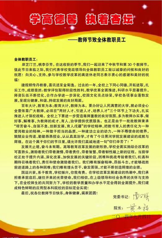 党委书记曹百瑛、院长贯昌福教师节致辞