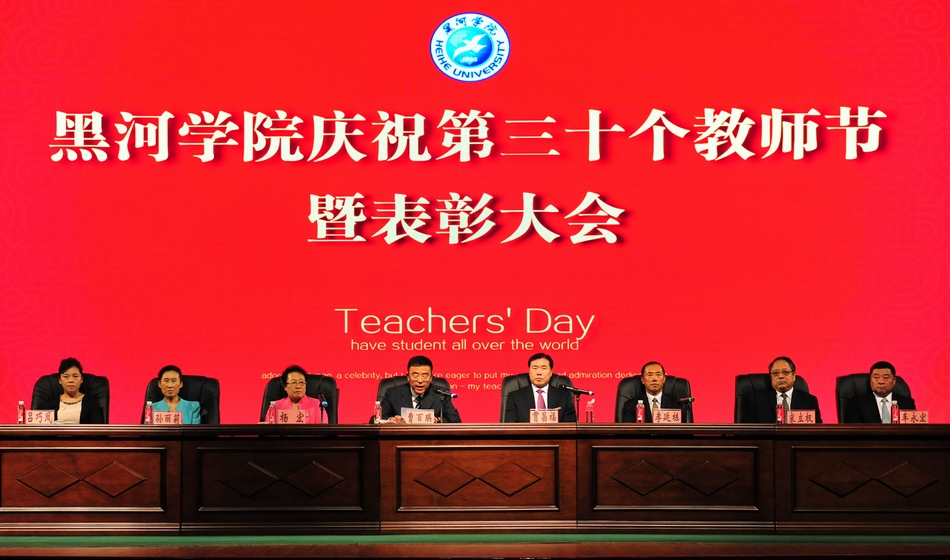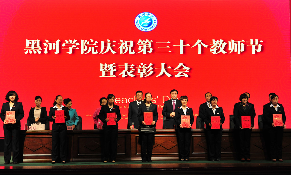 曹百瑛书记在会上作了重要讲话。他首先代表学院党委和行政向在各自岗位上为学院的建设和发展无私奉献、辛勤工作的全院教职工致以节日问候和衷心感谢,向受到表彰的先进集体和优秀教师表示热烈祝贺。曹百瑛书记指出,教师是人类灵魂的工程师,是高尚的职业和神圣的事业,教师的工作不仅关乎自己和学生的前途命运,更关乎国家和民族的兴衰荣辱。56年来,学院广大教师秉承立德树人的神圣使命,满怀对教育事业的无限忠诚,认真贯彻党和国家的教育方针,用自己高尚的师德风范、良好的人格学养和勤勉的敬业精神,培养了一代又一代建功于社会的拔尖人才,为区域经济建设和发展做出了重要贡献。曹百瑛书记强调,过去的一年,在全院师生员工的共同努力下,学院各项工作取得了可喜的成绩,教育事业取得了长足的进步。如今,黑河学院面临全面深化改革的关键时期,要实现建设特色鲜明、优势突出的地方性、应用型、国际化大学的发展目标,仍然要依靠全院教职工的共同奋斗。